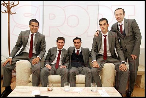 左からダニ:最優秀DF、めっし:最優秀FWとリーガMVP、チャビたん:最優秀MF、ブスケツ:新人賞(新人だったっけかw)、イニさん:最優秀セントロカンピスタ(攻撃的なMFらしい、なんでMFだけふたつあるのかしら)