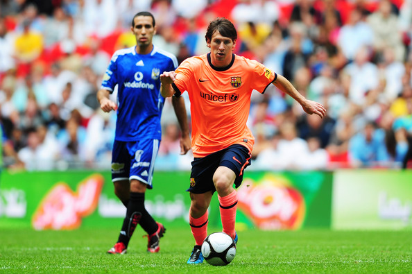 今シーズンの2ndユニを着て試合にのぞんだLeo Messi。